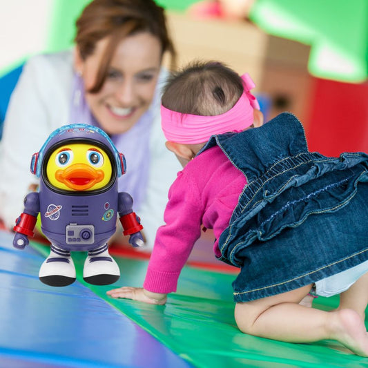 🌟 Le jouet musical interactif Quackinou™ – Ce canard motorisé, accompagné de deux canetons lumineux, propose deux modes de jeu : "suivi" où la petite famille se déplace en ligne, incitant bébé à ramper pour les suivre, et "rotation" où les canetons tournent autour de la maman canard. Avec ses 6 mélodies entraînantes, 10 berceuses et ses lumières douces, il offre une expérience sensorielle complète.